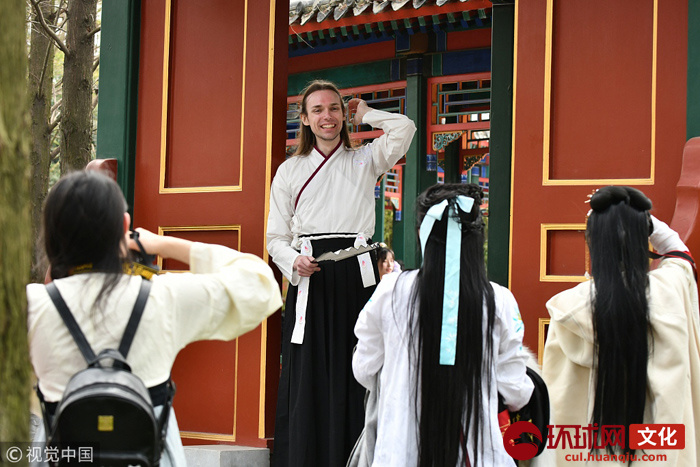 (2019年3月16日,武汉,“花朝节”在园博园举行,园内人山人海,热闹非凡。更有不少外国朋友也穿上汉服融入到这一盛会中。)