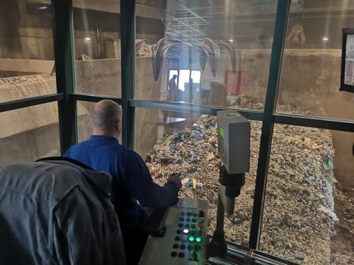 在厂房最顶层的运行控制中心,透过落地窗可以看到,工程师操控着巨大的机械手,一次次将各地运来的混合垃圾投入焚烧炉进料口,整个过程平稳而精准。