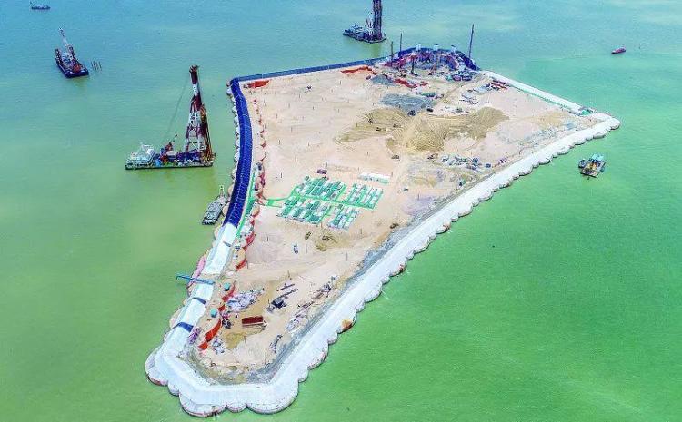▲深中通道西人工岛正式成岛