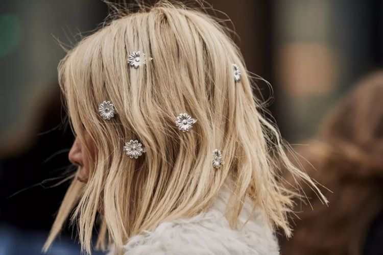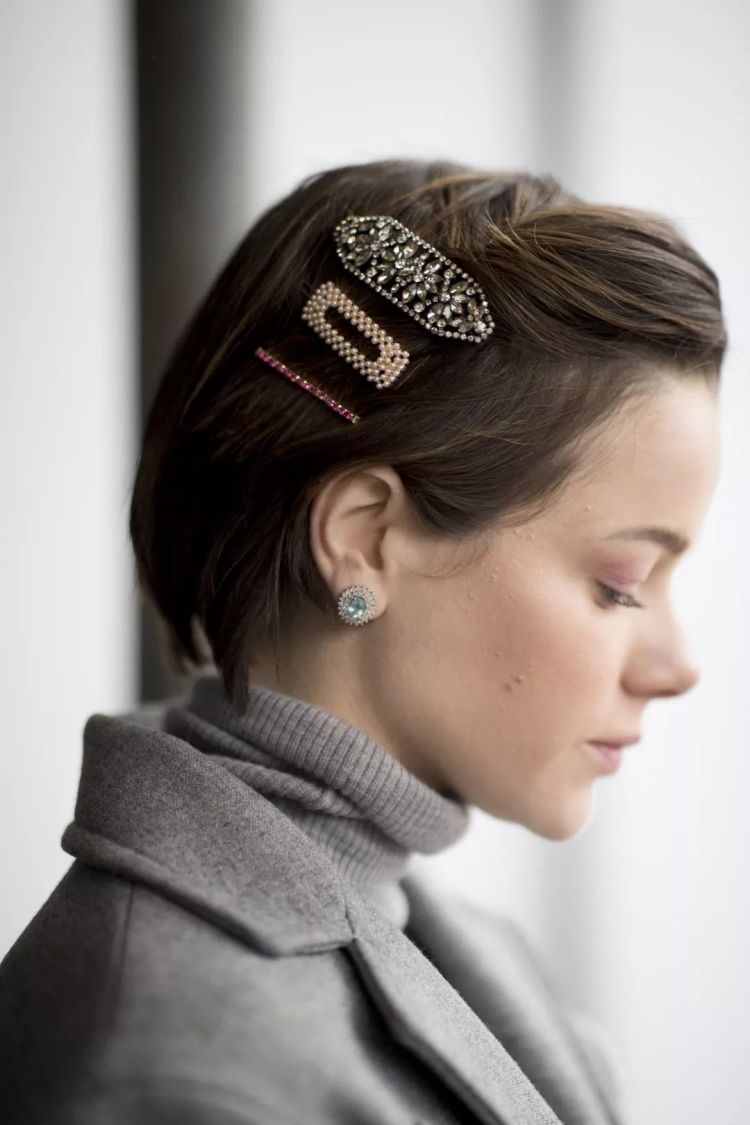 无论你选择发卡还是发带,用发饰来打造短发造型时,最好不要留刘海。因为发型重点太多,会让发型显很乱。