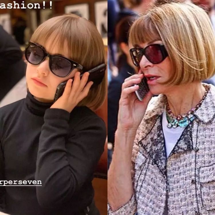 尤其和美国Vogue主编Anna Wintour坐在一起时,则更显经典。因为同款发型,是这位时尚女魔头的最爱,甚至已经成为了她的标准。