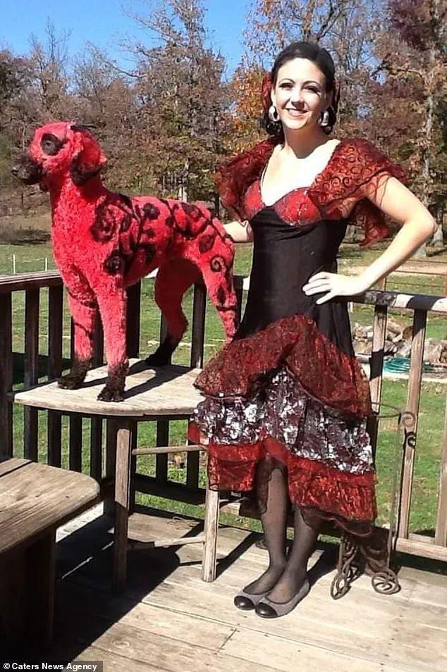 The 33-year-old uses vibrant dyes and clipping tools to sculpt 12-year-old Bijou's fur into whatever takes her fancy, claiming that the dog loves being pampered and preened until she looks like a completely different species.