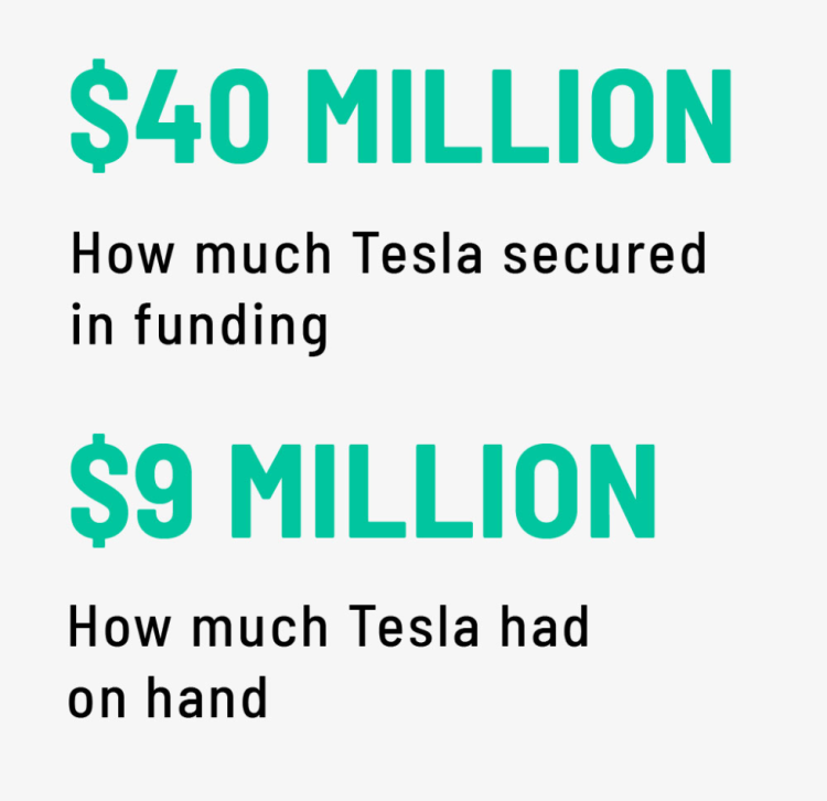 特斯拉手头只有900万美元,而且可能无法将跑车交付给已经花了10.9万美元购买的客户。该公司通过发行可转换债券从投资者那里获得了4,000万美元的资金,以帮助其避免破产并实现生产目标。