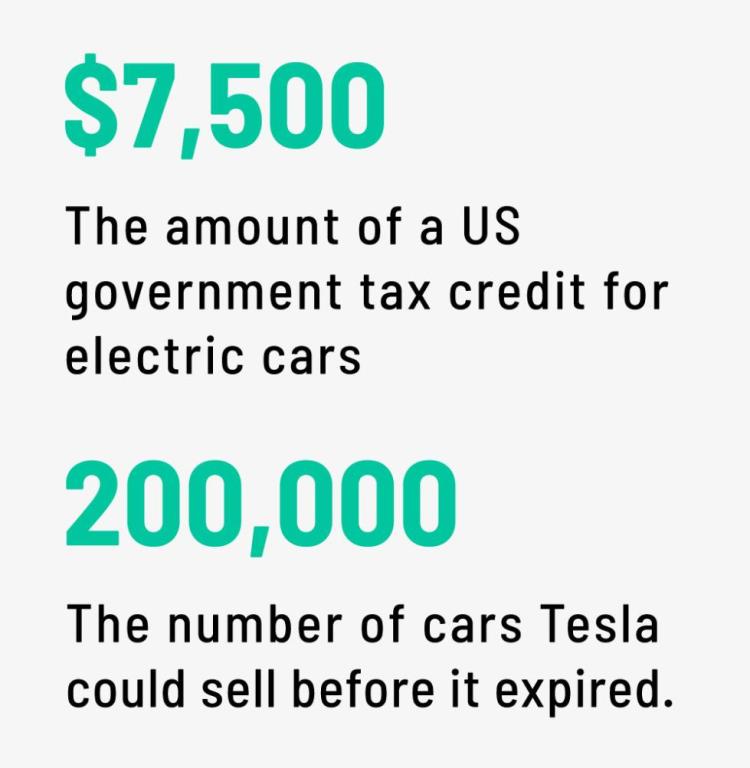 在特斯拉销售了足够多的电动汽车后,一项针对电动汽车的7500美元政府税收抵免政策结束。