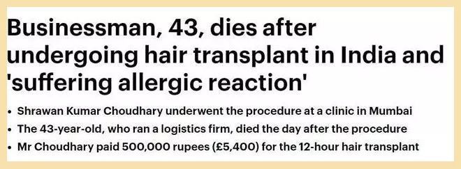 头发浓密确实有"减龄"效果,这不为了拥有一头秀发,不少人都会去选择植发。前两天一名印度富商也走上了植发这条路,不过他却因此丢了性命……