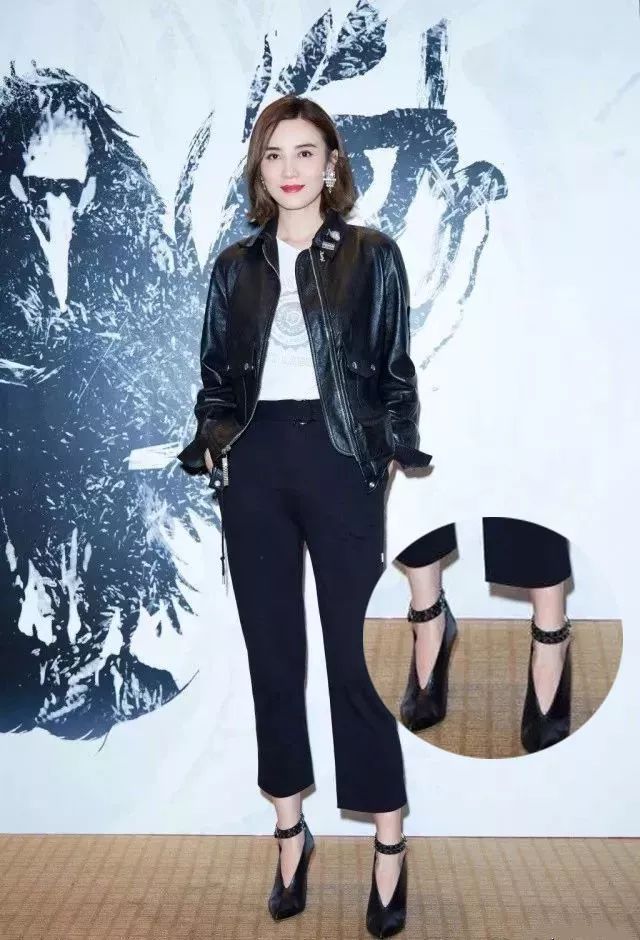 自曝体重从没下过100斤的山东大妞张雨绮,因为上围丰满更会显得头重脚轻,相对腿短,精致的小V口设计就使脚踝立刻细了一圈。