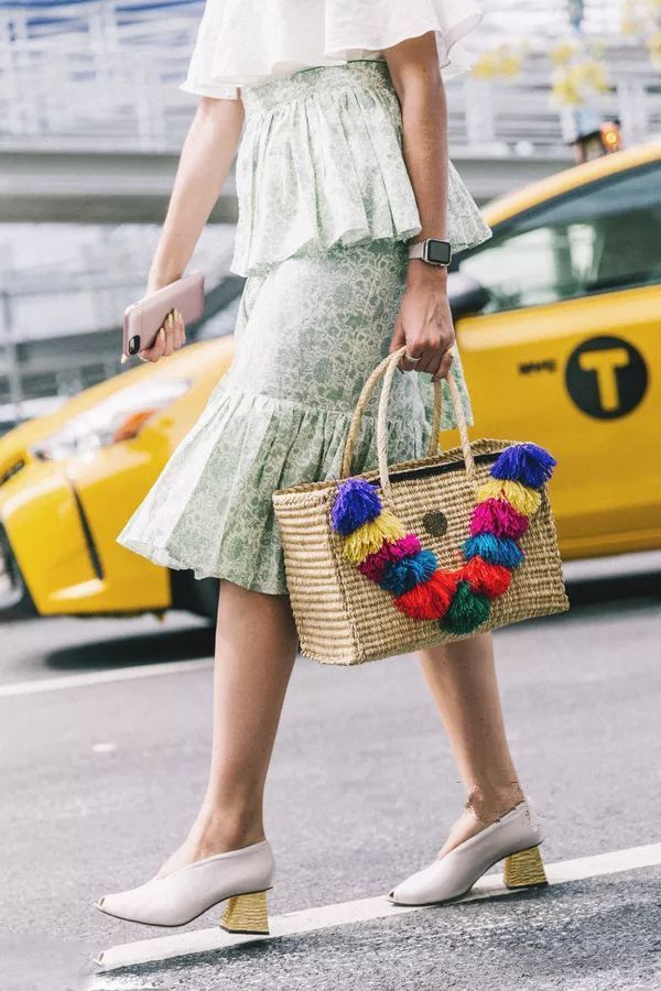 今年春夏的流行色绿色作为难穿色之首,遵循鞋包同色原理,显眼无敌个性十足。