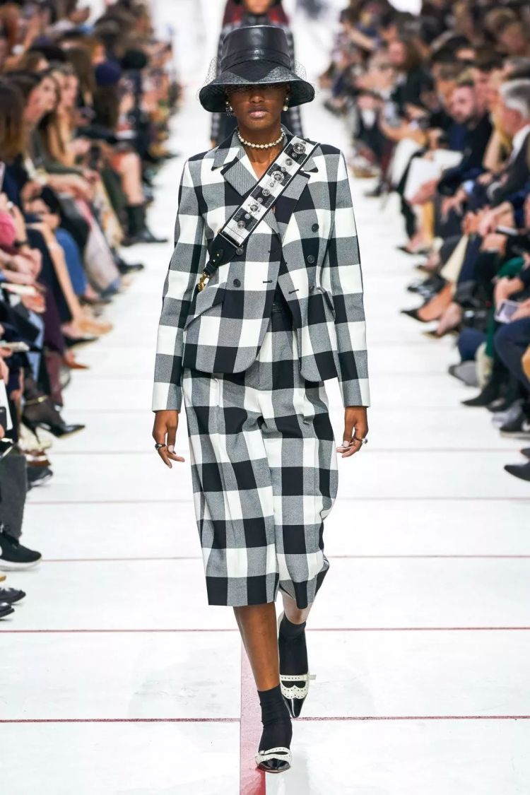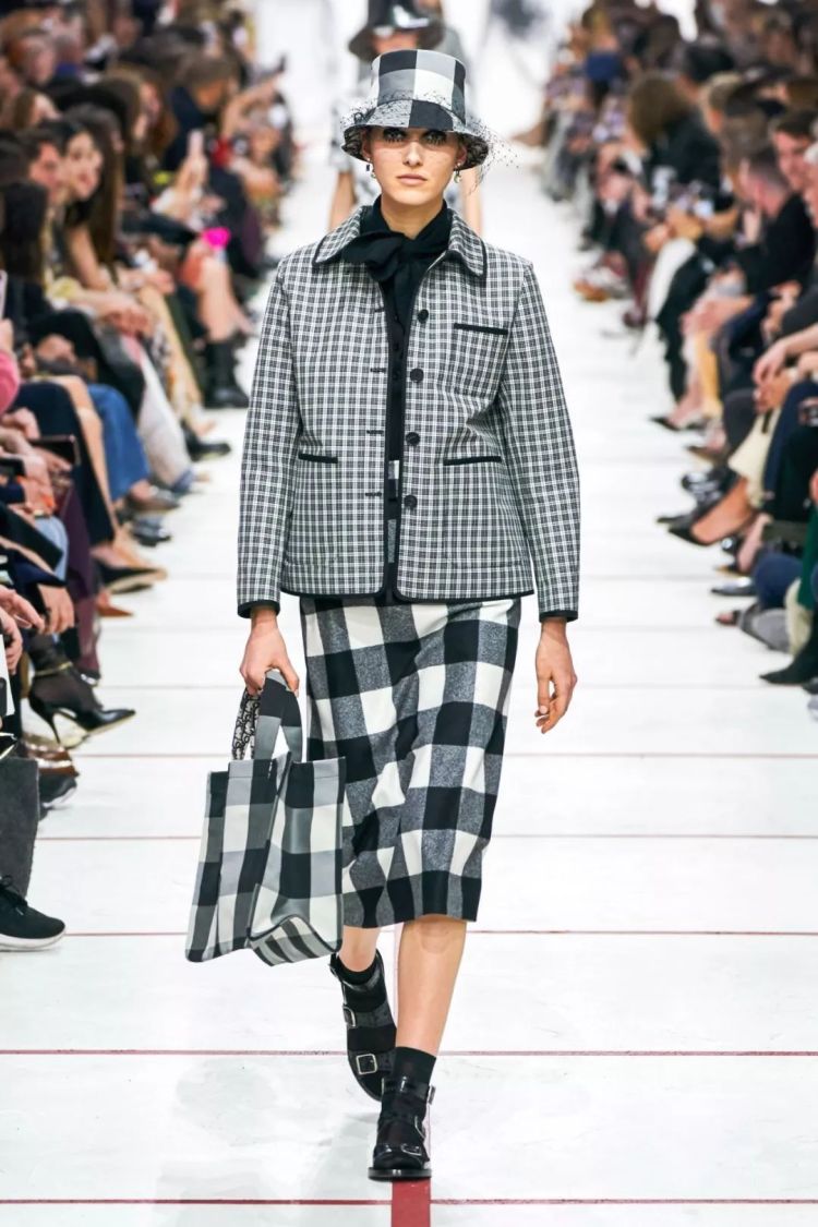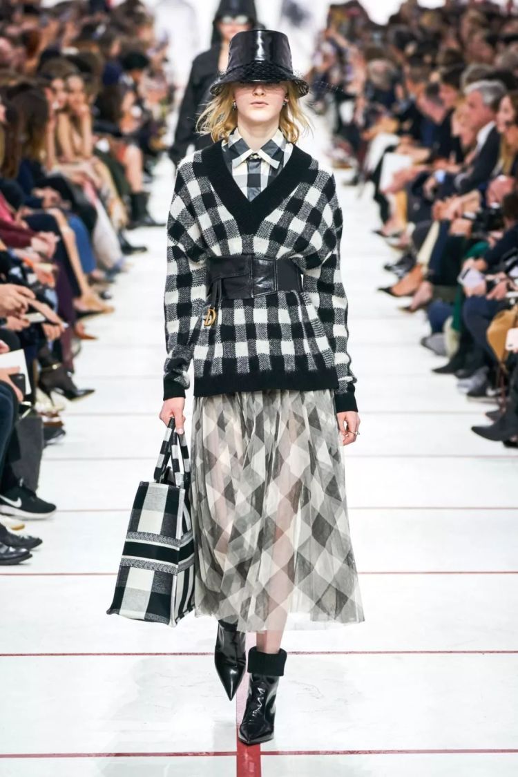 去年就开始红红火火的维希格纹也不能落下,玛丽阿姨又拜倒在了它的魅力之下。Dior 2019年秋冬秀场还记得吧?不仅Dior经典的New Look披上了格纹的外衣,就连渔夫帽也全是一水儿的格纹。