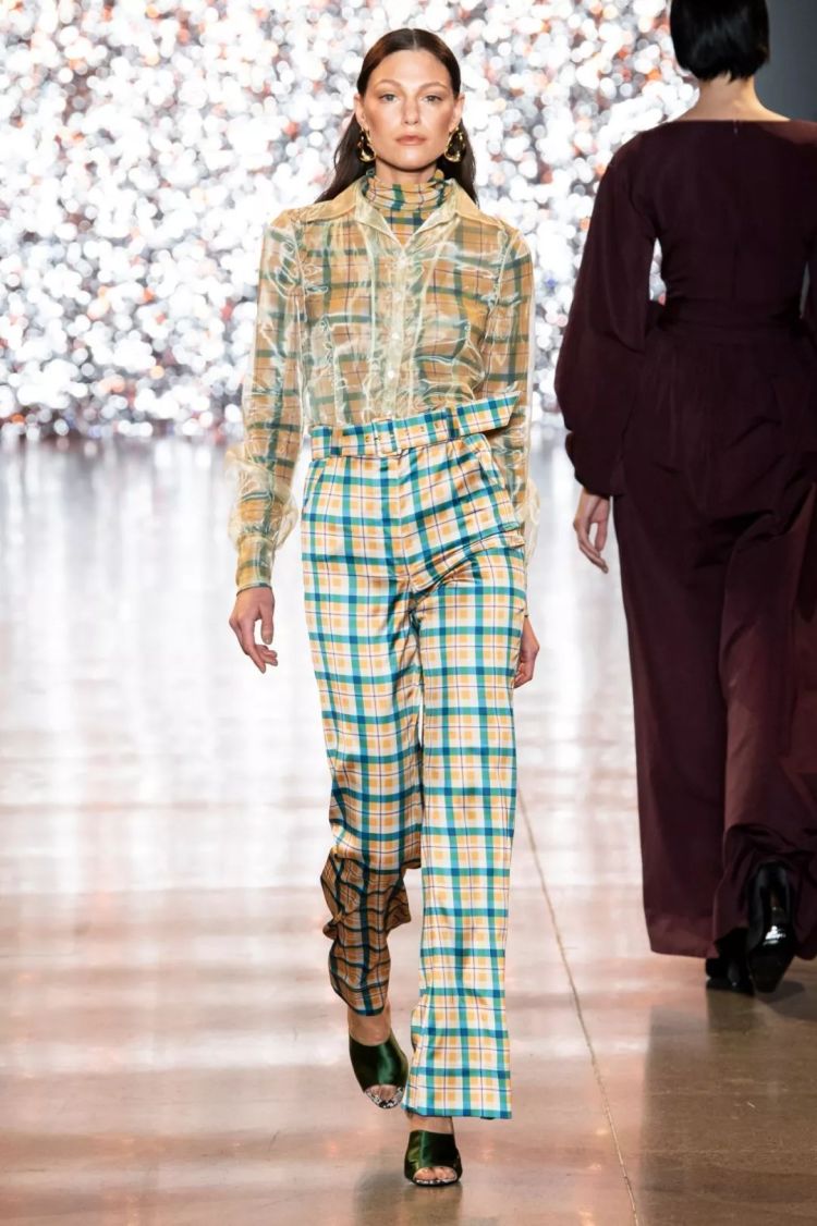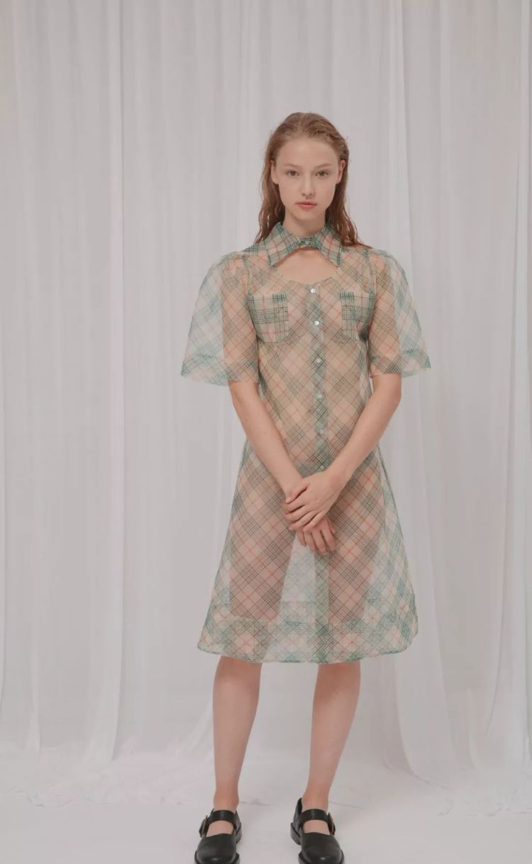 但对我们凡人来说,不如像Staud这样,在格纹之外加上一个透明的罩衫,真切地用薄纱滤镜让格纹变得与众不同