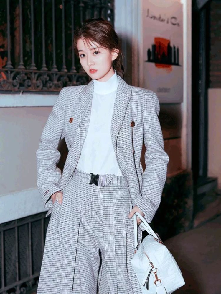 细腻的单色呢格纹在视觉上给人以非常饱满的感受,这时就需要用一件纯白的内搭进行留白,在疏密之间才能将高级感流露。