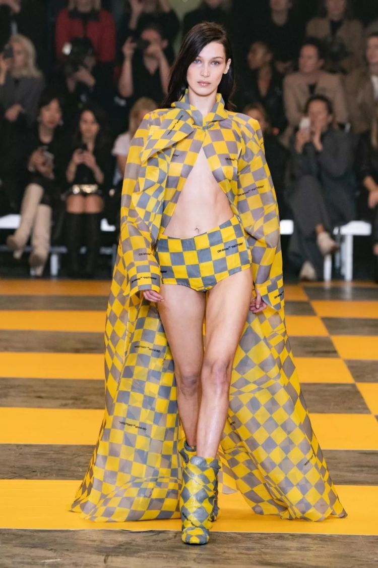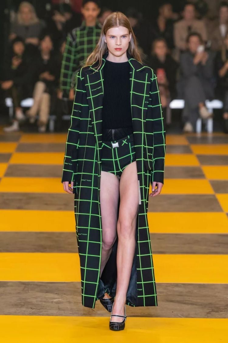 Off-White 2019年秋冬系列中用荧光色线条给格纹开了个光,无出其右的超级吸睛存在让格纹套装瞬间冲向了赛博科技的未来。