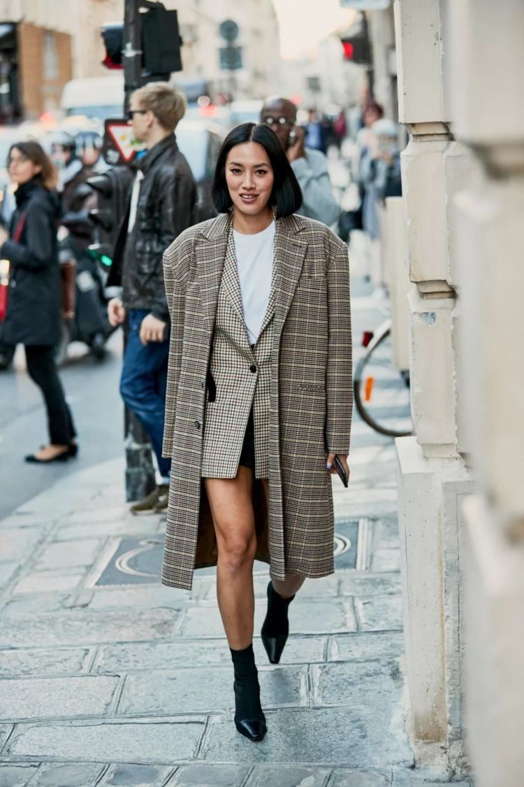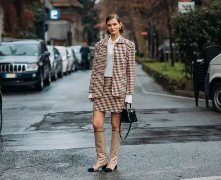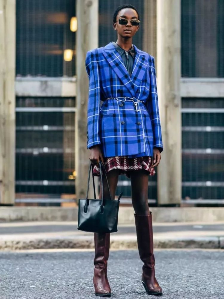 想要更进阶,直接来一件格纹拼接单品也是时髦一条街的大杀器。