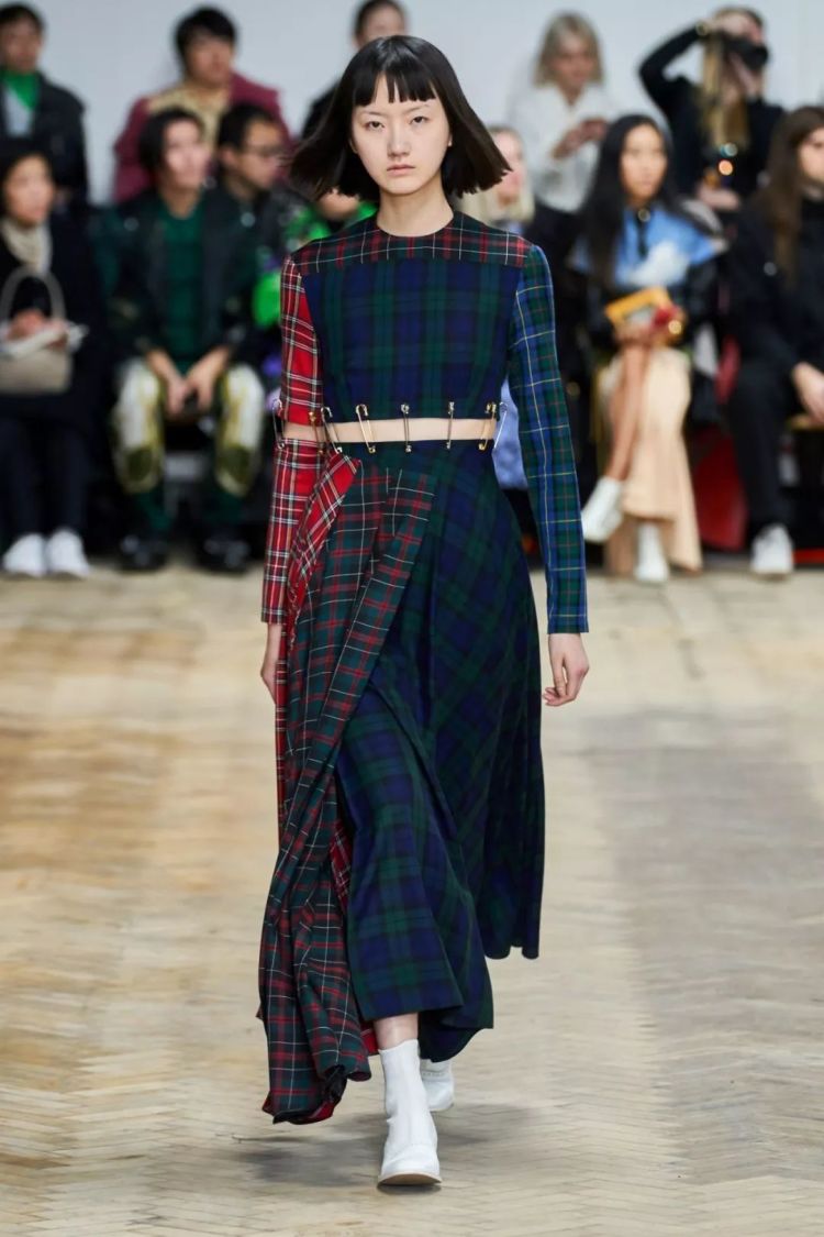 正确的穿法不如学一学A.W.A.K.E. MODE 2019年秋冬系列这一套,腰间一抹炫腹杀,让繁复的格纹长裙看上去更有个性。