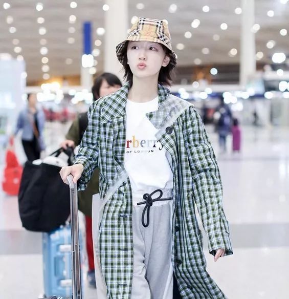 当然,玛丽阿姨教的格纹套格纹的大招也不能落下,拼接的透明格纹风衣搭配同款的百慕大短裤,层次感十足,又多了一份仙女的高冷之气。