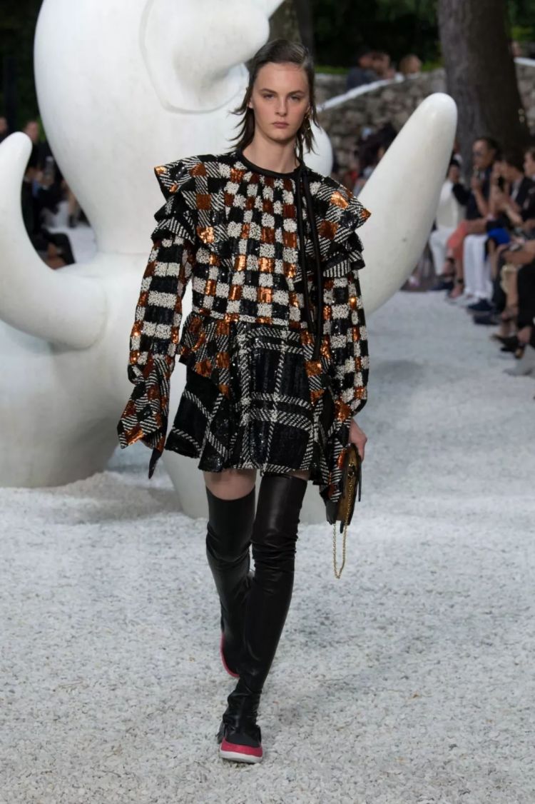 还想要进阶的时髦精,不如用今年超in的金属材料与传统的棋盘格相互纠缠,跟着模特一起走向闪闪发光的未来