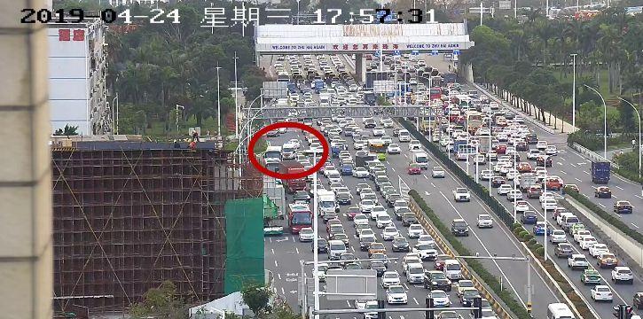 当粤TFG120救护车来到上冲检查站时,已经是下班晚高峰,看到前面亮起了一片红的车尾灯,救护车被重重包围住。医生赶紧叫张先生求助珠海交警,但张先生早已哽咽到说不出话,焦急的医生只好夺过电话求助。