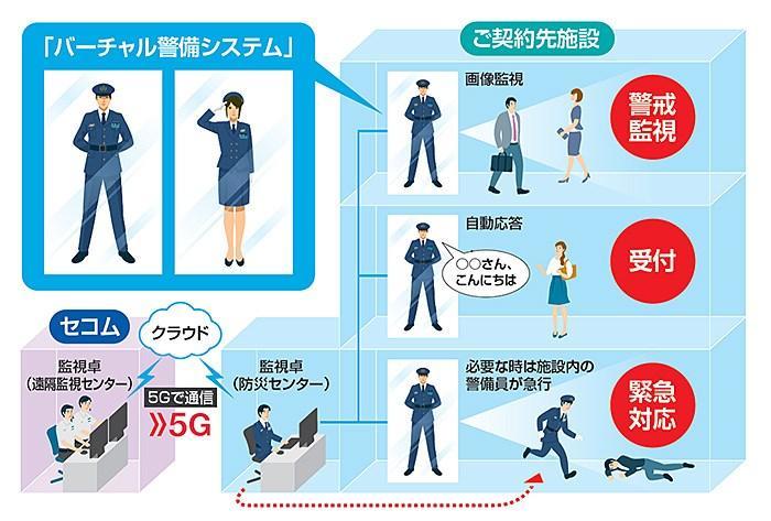 SECOM为这套系统提供了安保和警卫的技术,AGC负责开发镜像显示器和虚拟机器人,DeNA负责安全角色草案以及语音合成,NTT DoCoMo则提供5G以及访客语音识别技术。