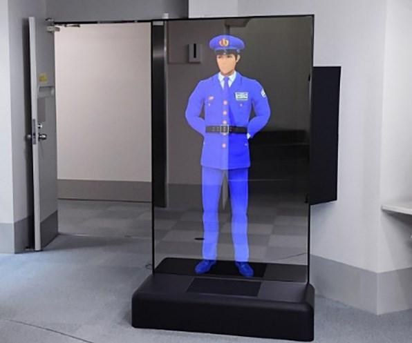 这套虚拟安全系统配备了有高反射率的镜面显示器,可以在屏幕上显示真人大小的“虚拟警备员”3D模型。这套系统的虚拟警备员有男性、女性两种虚拟角色,可以像现实生活中的警备员那样提供服务。