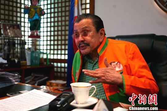 4月26日,菲律宾前总统、现任马尼拉市市长埃斯特拉达在马尼拉市政厅接受中新网采访表示,很高兴菲律宾和中国关系很好,我希望杜特尔特总统和中国领导人继续保持好的关系。 关向东 摄
