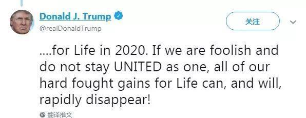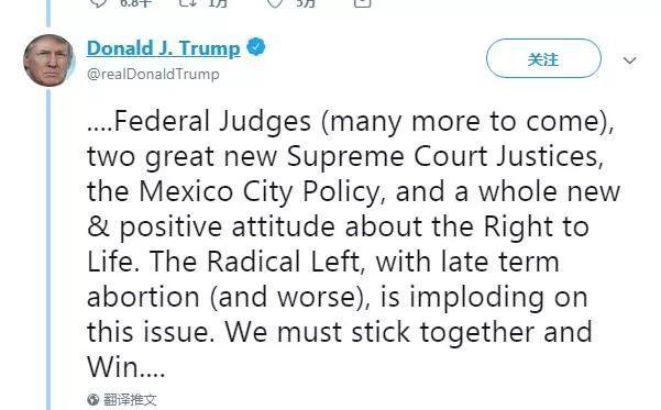 正如大多数人所知道的那样,我强烈支持Pro-Life(亲生命) ,但是强奸,乱伦和保护母亲的生命 是三个例外——罗纳德⋅里根也是同样的立场。 在过去的两年中,我们已经取得很多进步,有105名出色的新任联邦法官(还将有更多),两名出色的新任最高法院大法官,“墨西哥城政策”,以及对生命权全新的积极态度 。 支持大月份堕胎(或者更糟糕情况)的激进左派们,在这个问题上正在崩溃。 我们必须团结起来,在2020年赢得生命权 。如果我们一时糊涂,不能联合成为一体,那么我们为生命所做的所有奋斗都将迅速前功尽弃!