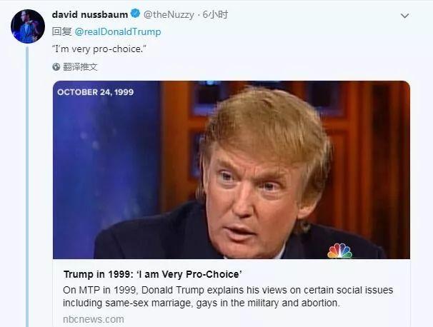 他曾在1999年的电视节目中,表示自己在堕胎问题上“亲选择” 。