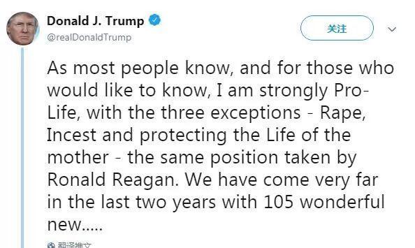 周六,特朗普总统终于打破沉默,连发三条推特,对最严“反堕胎法”表达了自己的看法 。