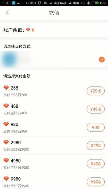 注册会员通过第三方平台充值购买虚拟钻石、跑车、飞机、火箭等道具,道具价格不等,最低的0.5元,最高的1888.8元。