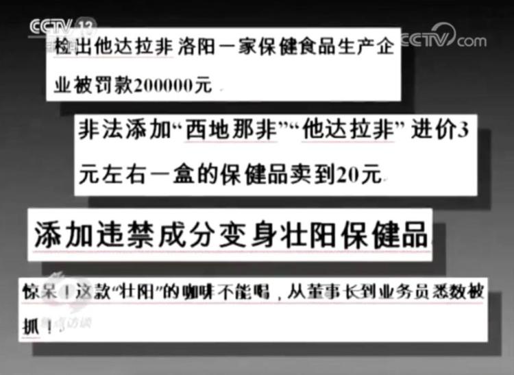 他达拉非本来是处方药,一些不法商家在没有或者根本就不可能获得药品生产资质的情况下,为了牟取暴利,把他达拉非加入食品中,打着食品的旗号,放在药店、性用品店以及网上销售。我国《食品安全法》规定,食品广告应当真实合法,不得涉及疾病预防、治疗功能。