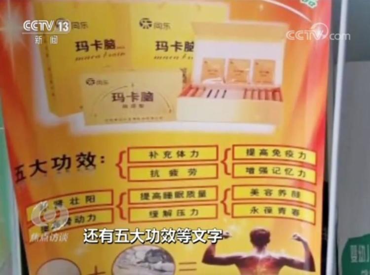 张家界市场监督管理局稽查支队长官庆介绍,药店里的广告牌上标注这款咖啡有壮阳、美容、提高记忆力等五大功效。检查过程中发现这款咖啡有诸多疑点:生产日期没有按照国家规定标注到日,而只标注到月;小包装上的配料表成分和外包装上的不一致。