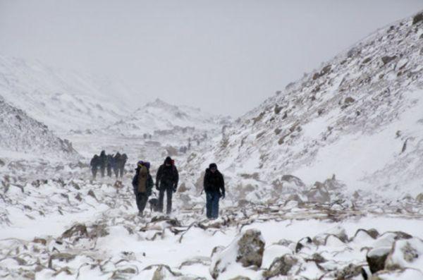 2017年3月11日的资料照片中,登山者徒步前往尼泊尔Lobuche附近的珠穆朗玛峰大本营。