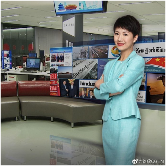 CGTN女主持人刘欣(图片来源:刘欣微博)