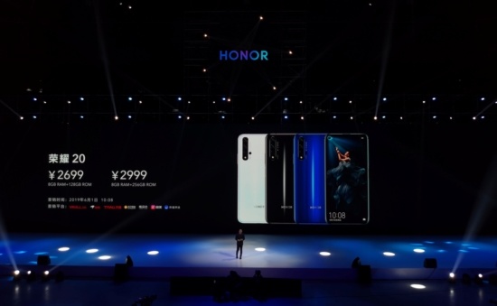 此次荣耀20系列新品发布共包含,荣耀20 8GB+128GB版本2699元,8GB+256GB版本2999元;荣耀20 PRO 8GB+128GB版本3199元,8GB+256GB版本3499元。作为科技美学旗舰代表,荣耀20 PRO提供有“蓝水翡翠”、“ 幻夜星河”两种幻镜配色,荣耀20则拥有 “ 幻影蓝”、“ 冰岛白”、“ 幻夜黑”三种经典配色,除此之外,荣耀20 PRO还持续探索与MOSCHINO深层次的联合设计,推出荣耀20 PRO x MOSCHINO 联名版,8GB+256GB版本3799元。 荣耀20将于6月1日10:08正式面向用户开售,荣耀20 PRO将于6月18号0点开售,线上销售平台为Vmall、京东、天猫、苏宁易购、唯品会、国美、荣耀亲选。