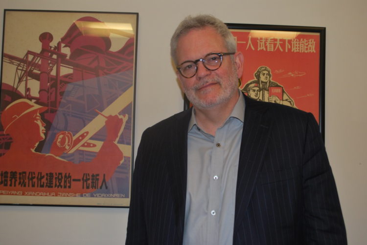 美国全国商会亚洲事务高级副总裁傅瑞伟 ( Charles W. Freeman III )的办公室距白宫仅几十步之遥,门口木标牌上有毛笔正楷写的“办公室”3个汉字。作为美国前总统尼克松访华首席中文翻译、前驻华公使傅立民之子,傅瑞伟与中国有着与生俱来的不解之缘:他曾担任过美国对华贸易谈判代表、美国顶尖智库战略与国际问题研究中心(CSIS)中国项目主任。他近日在接受《环球时报》专访时表示,美国不应将中国的经济崛起看成是对自身的威胁,应多看双方过去40年合作的成功之处,早日让两国关系转危为安。采访期间,傅瑞伟指着办公室墙上张贴的“军民团结如一人,试看天下谁能敌”“培养现代化建设的一代新人”等具有中国时代烙印的宣传画说:“我是把CSIS办公室的全部中国家当原封不动地搬到这里了。”据他透露,不仅自己子承父业,而且他的子女也精通中文,有望在不久的将来成为第三代“中国通”。