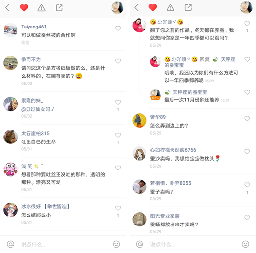 据石兰介绍,为了缩短蚕宝宝的养殖周期,家里会从当地的蚕种厂买来孵化好的幼虫。健康的蚕宝宝会在回来不久进入休眠期,几天后开始蜕皮,经过四次的休眠和蜕皮,蚕宝宝进入5龄阶段后开始吐丝。“爱睡觉的蚕才是好宝宝”,石兰说:“如果发现有一些蚕不爱睡觉,那它们多数是生病了。5龄蚕最容易发生病变,这个时候一定要做好室内通风,经常打扫卫生。如果病蚕数量多,就要考虑用药了。”有用户评论道:“原来懒蚕是优良品质啊,羡慕。”