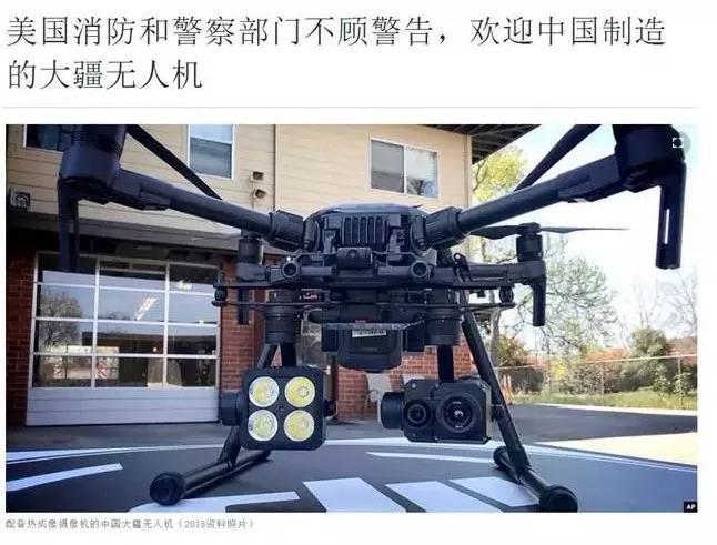 在这篇题为“不顾警告,美国急救部门人员欢迎中国制造的无人机”的报道中,美国媒体说,包括美国警方和消防部门在内的急救部门已与大疆公司合作,使用大疆无人机及其软件进行相关救援和培训工作。