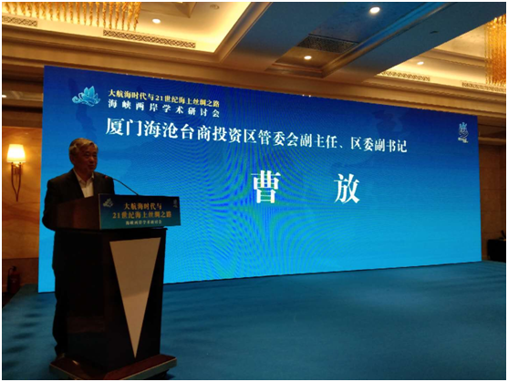 环球网厦门6月16日电 为期两天的大航海时代与21世纪海上丝绸之路海峡两岸学术研讨会今天在此间闭幕。研讨会属于第十一届海峡论坛组成部分之一。中共厦门市委常委、海沧台商投资区党工委书记、海沧区委书记林文生,中国社会科学院副院长、中国历史研究院院长高翔,古今书廊总监、中华郑和学会前理事长赖进义先后在研讨会开幕式上发表致词。中国社会科学院西亚非洲研究所所长、中国非洲研究院常务副院长李新烽主持了开幕式。出席开幕式的还有来自海峡两岸有关高等院校和研究机构,以及新加坡、马来西亚、巴西、美国和香港等国家和地区的专家学者共计100余人。