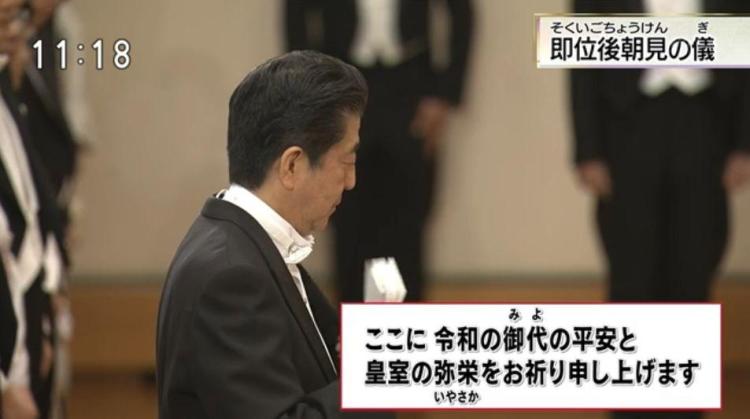 日本广播公司最新消息,刚刚,日本德仁天皇在“松之间”宫殿举行了即位后首次朝见仪式,与国民代表等进行会面,并发表了即位后首次讲话。德仁天皇讲话后,日本首相安倍晋三作为国民代表致辞。