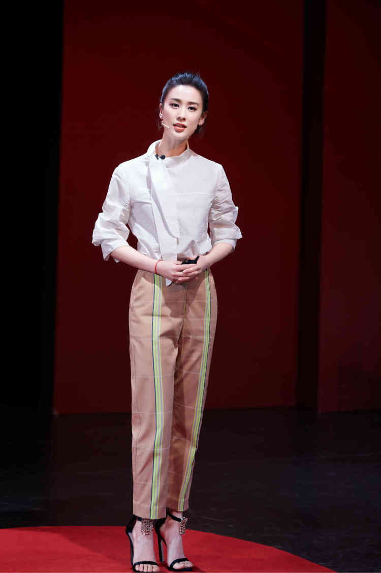 当日,黄圣依身着白衬衫和卡其色高腰西裤,配以清爽的马尾辫,洋溢着青春气息,元气满满。她在讲述前辈的激情岁月、自己的不忘初心和下一代的精神传承教育等一系列内容时,饱含正能量的深情演说,给听众留下深刻的印象,产生共鸣。