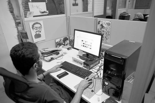 图说:图为伊朗一家地图科技企业员工在工作。
