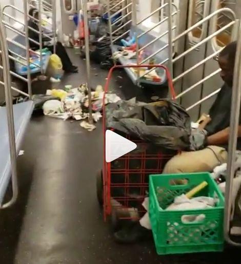 alsorbera: Rode the 1 train for 20 years and never saw anything close to this mess. It’s clear that the car was being occupied by several homeless riders who decided to dump their trash. The people making the mess are sitting right there!
