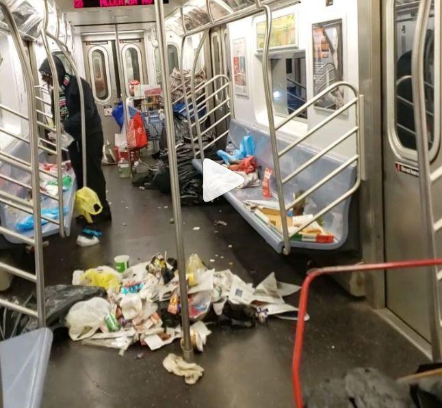 33岁的Timothy Brown拍下了如此肮脏的画面,然后把视频传到了Ins上。"这节地铁车厢上午看起来就是这个样子的。实在太疯狂了。他们还想要我们花钱乘地铁?看看这画面。”