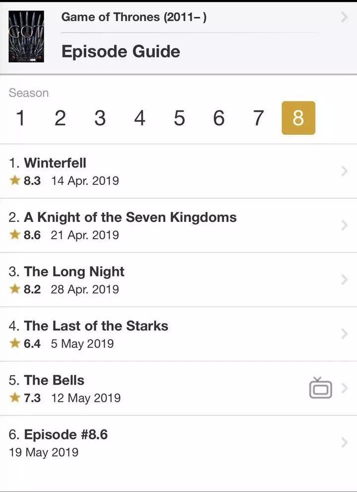 要知道在上周第四集之前,《权游》IMDb评分最低也有8.2。而国内豆瓣评分因为之前有许多情怀分,开播时就有9.4,现在也已经降到了9.0。