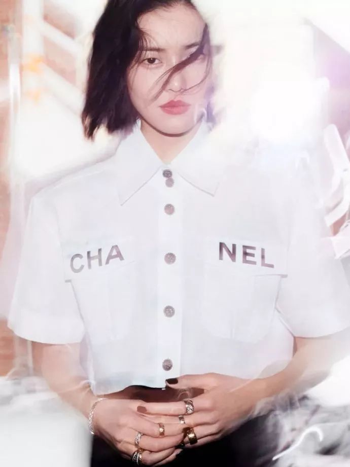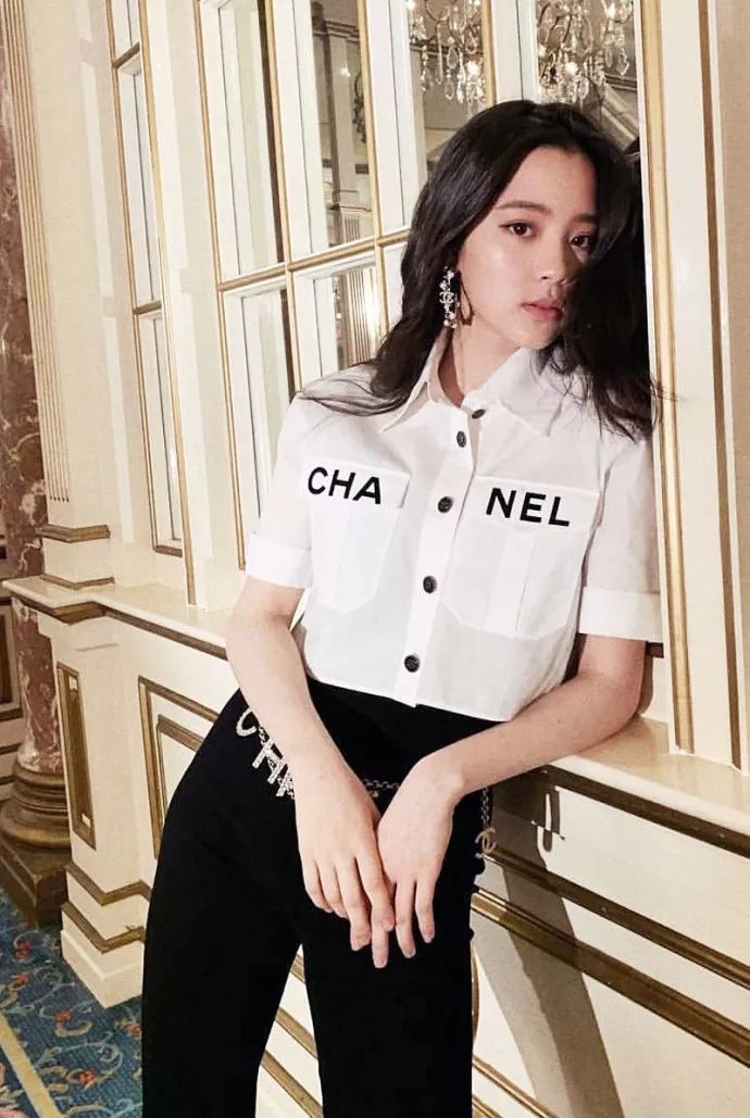 Chanel 2019春夏系列的这件短袖白色衬衫最近不要太火,超多女明星都穿过,张子枫穿上它俏皮可爱。