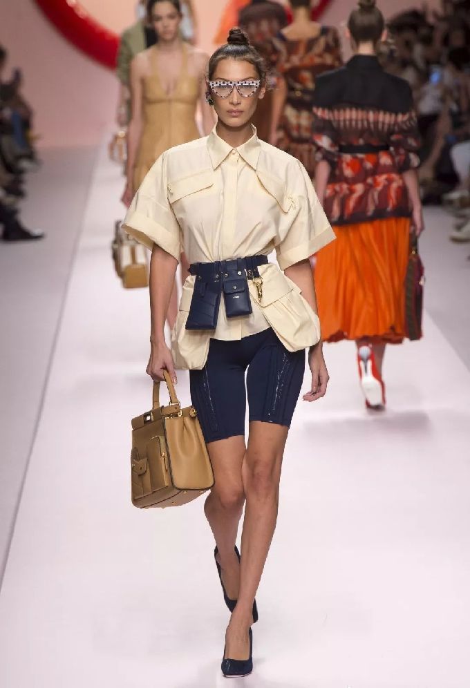 短袖衬衫的可塑性不止这么简单,它还能变成Fendi的摩登杀手锏,如果把兜的地方或领子做拼接处理,一下就变得很酷。它同时也是万金油,连单车裤都能和它轻松搭配,还有什么是短袖衬衫不能驾驭的?