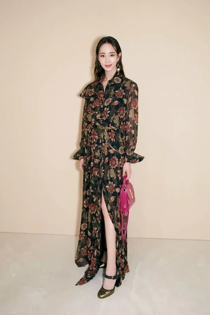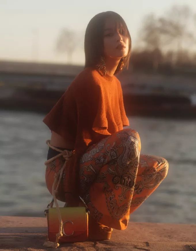 如果觉得全身太过花哨,也可以像辛芷蕾这样选择一件单品,这件Chloé佩斯里印花喇叭长裤,浪漫又有质感。