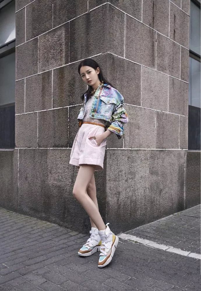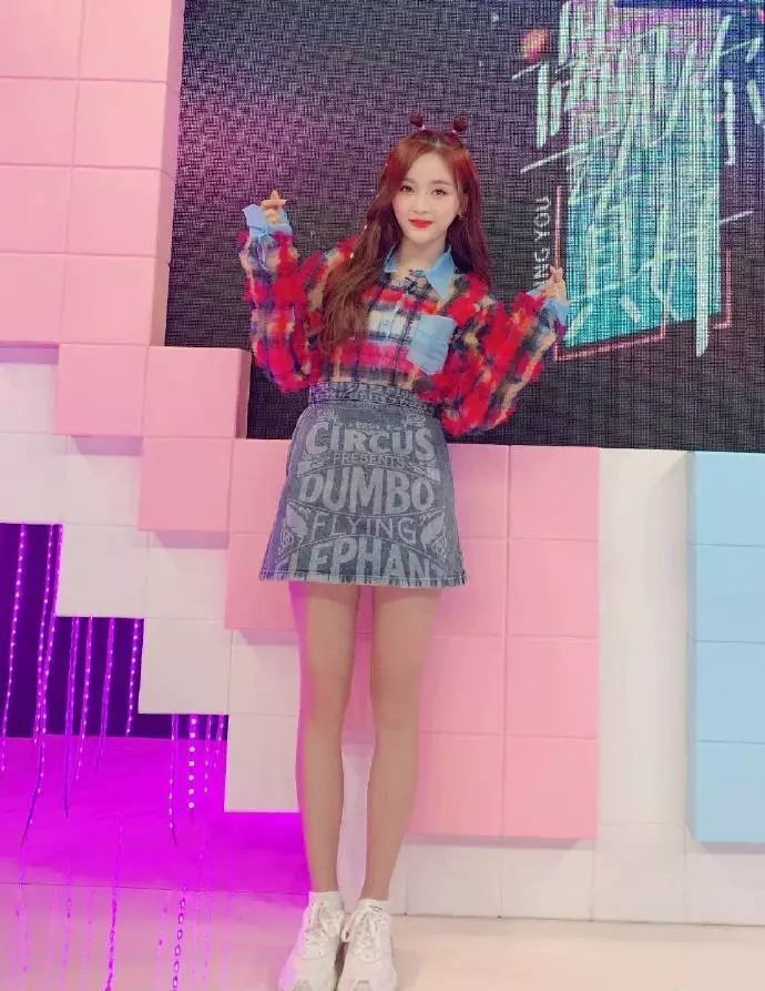 水洗牛仔裙诸位也可以在夏天考虑一下,吴宣仪的这条d’zzit小飞象水洗牛仔短裙,童趣又不失帅气。