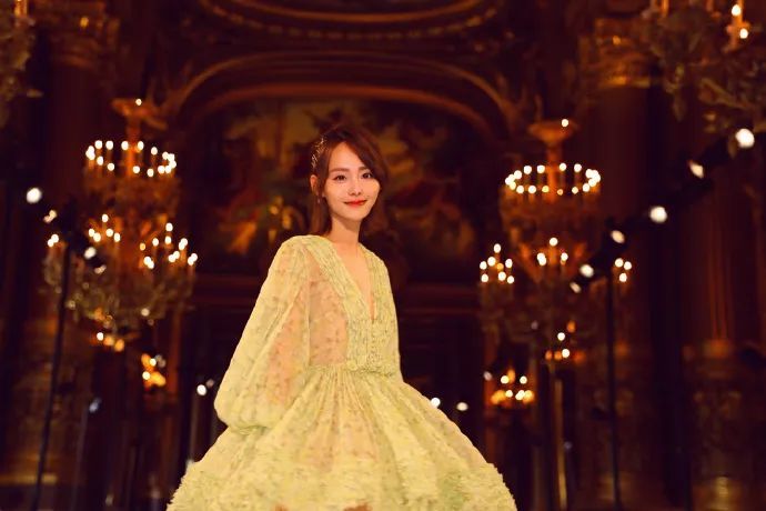 Yamy看秀时也选择了大垫肩,这件Balmain双排扣西装气场十足,内搭的抹胸,比搭配衬衫更强调时装感。