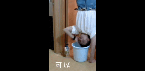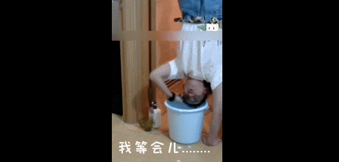 不是每一个人都有上面那个小哥哥的功力,倒立洗头立不起来咋办?借助墙壁的力量似乎是个不错的选项。不过下面这个小哥就有点一言难尽了,本以为是个王者,没想到最后是个青铜。