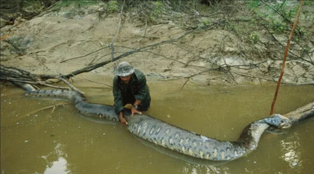 不过在媒体上这件事传得很玄,甚至出现了一张拼接的照片,显示水下的巨蟒横断欣古河 – 这显然是对巴西自然环境无知的人所做臆造。欣古河下游的宽度很大,蔚为壮观,水量远超长江,一条蛇将其横断,显然是违反常识的事情。