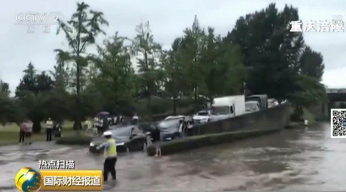 从22日凌晨开始,重庆市涪陵区遭遇强降雨,致使全区大面积积水。在主城区南门山等地,洪水奔流而过,还有市民不慎滑入水中,差点被大水冲走。